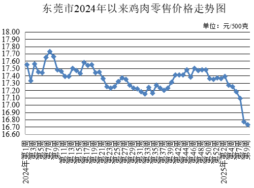 第9周,所監(jiān)測的牛肉農(nóng)貿(mào)市場零售均價為每500克46.59元,較上周下降0.19%。牛腩農(nóng)貿(mào)市場零售均價為每500克43.09元,較上周下降0.12%。雞肉農(nóng)貿(mào)市場零售均價為每500克16.73元,較上周下降0.24%。